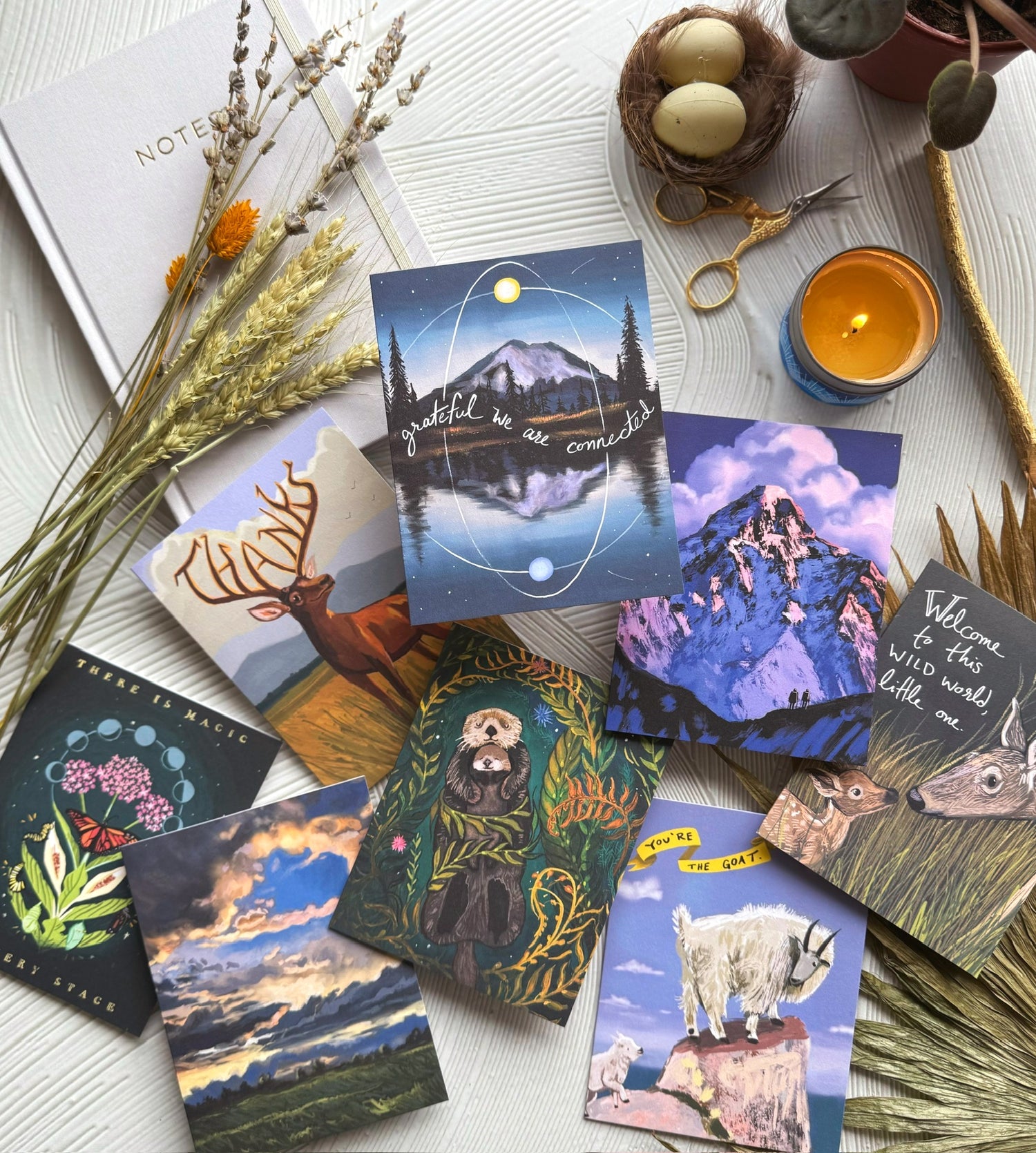 8 cards and a postcard to encourage hope and celebrate the mystery of life
