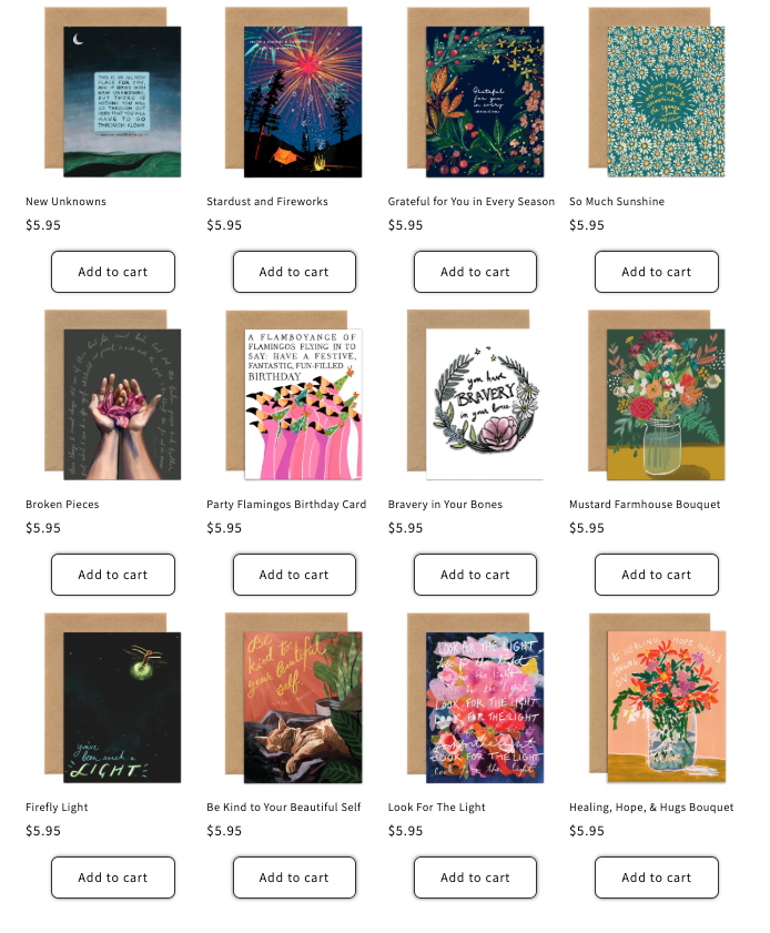 This card pack is wonderful. So many uses for all of these cards. My favorite is All Swears and All Prayers! I gave it to my friend going through a tough year teaching! It was the perfect card to give her-we laughed and cried as she read it! Thank you, Tiny and Snail for giving words and beauty to my thoughts! 💗💗💗