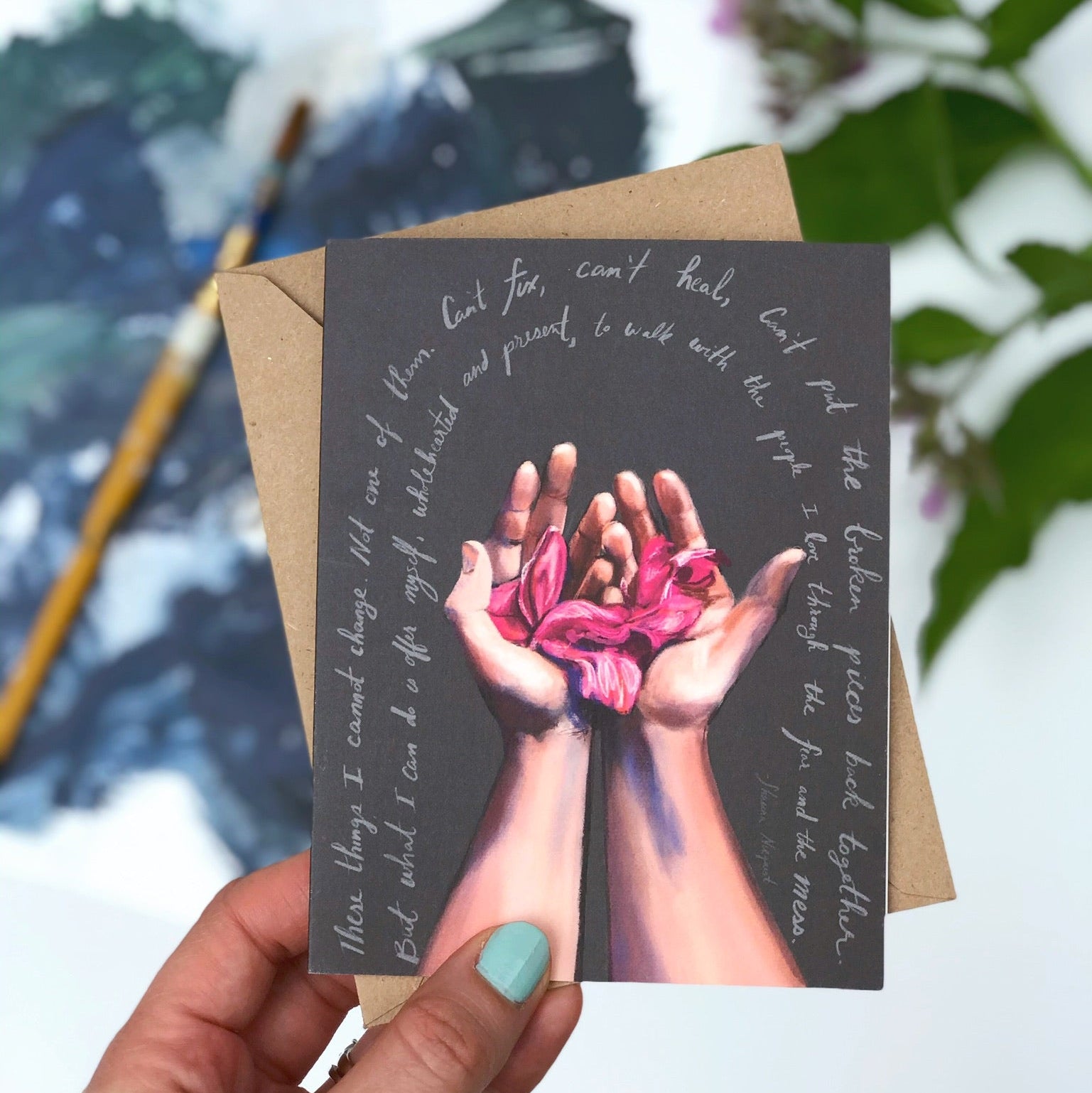 I have been making a habit if sending friends and family handwritten notes for about six years, and it is a joy to use Tiny and Snail cards. The cards are made with love, courage, strength and beauty. The quality of paper does not disappoint either. Gorgeous illustrations! Warm and whimsical words. Perfect for all occassions.